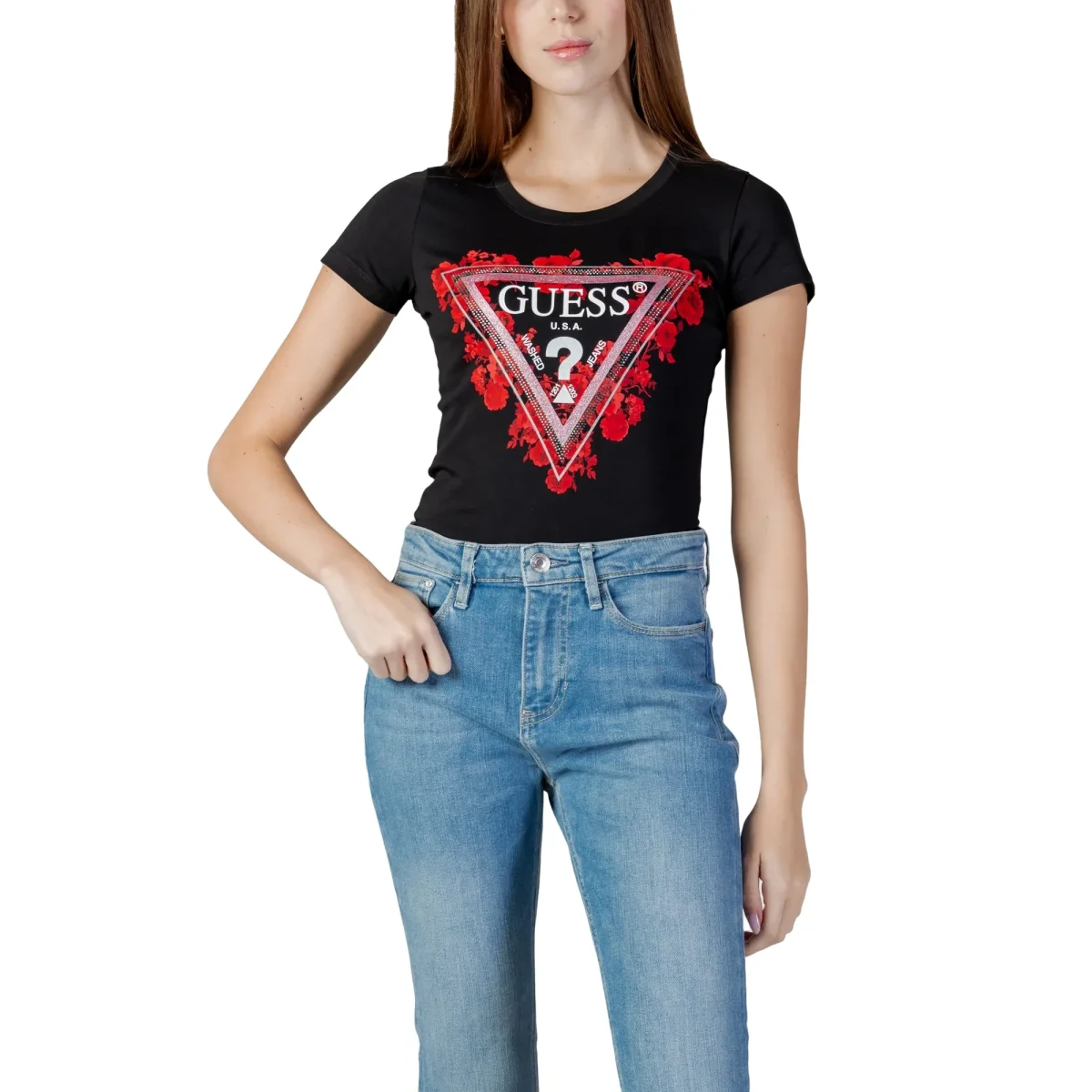 T-shirt Donna Nera SS CN FLOWERS TRIANGLE TEE