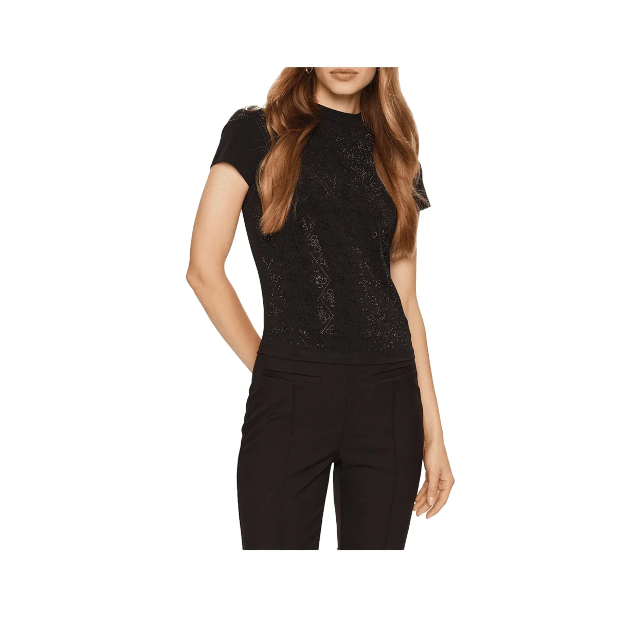 T-Shirt Mock Neck Donna Nero Logo 4G Strass