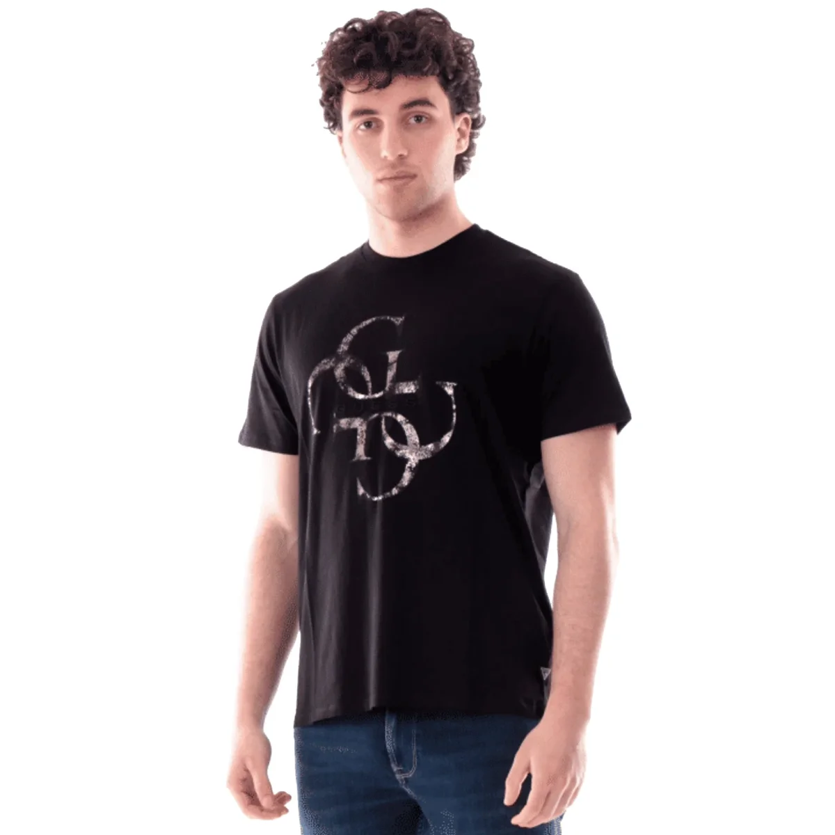 T-shirt Nera Uomo Cotone Scritta Slim