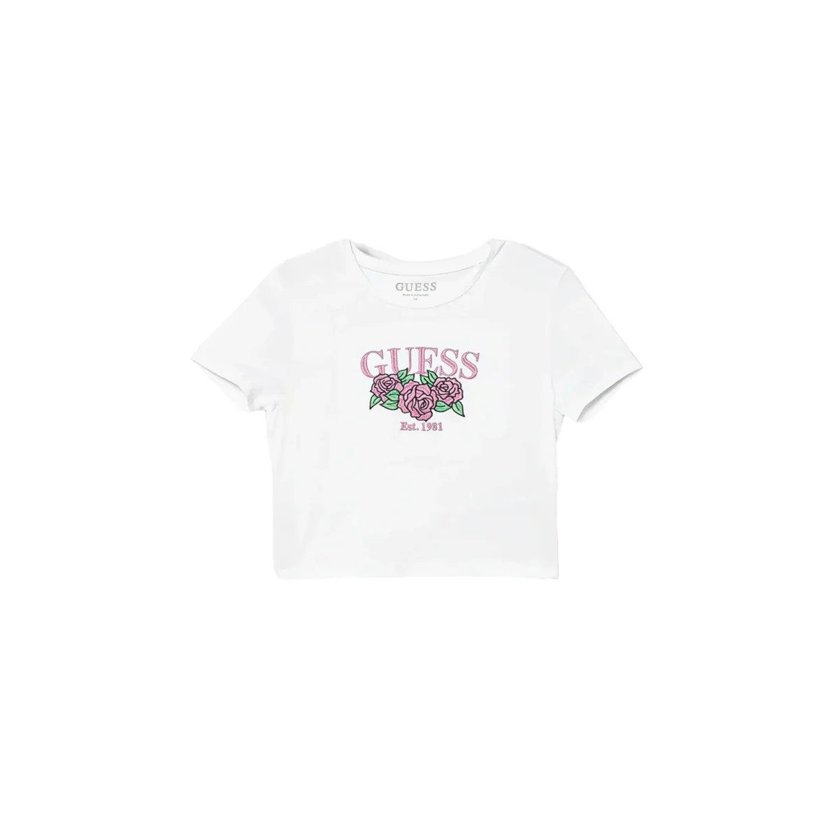 T-Shirt Nera Crop Stampa Labbra Maniche Corte