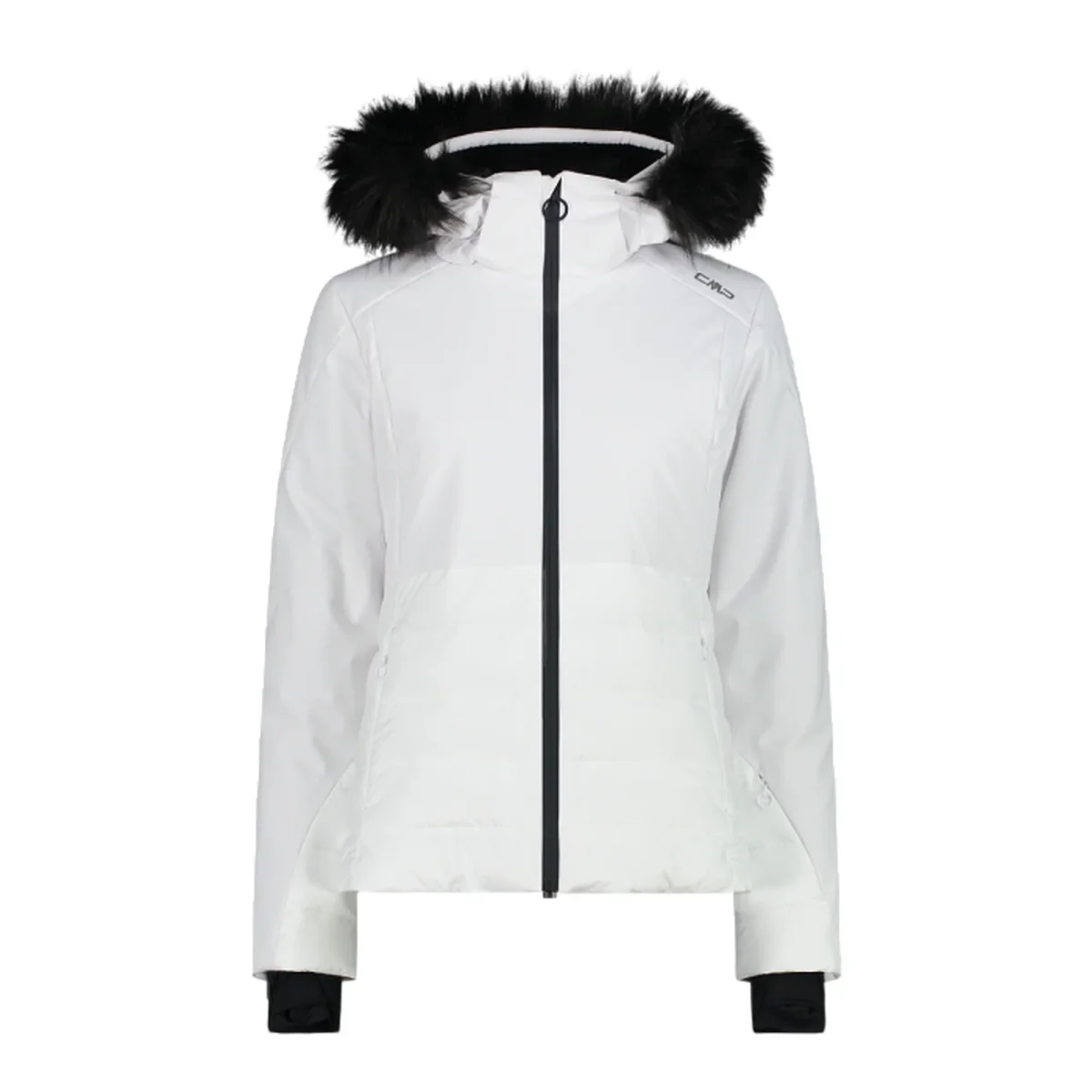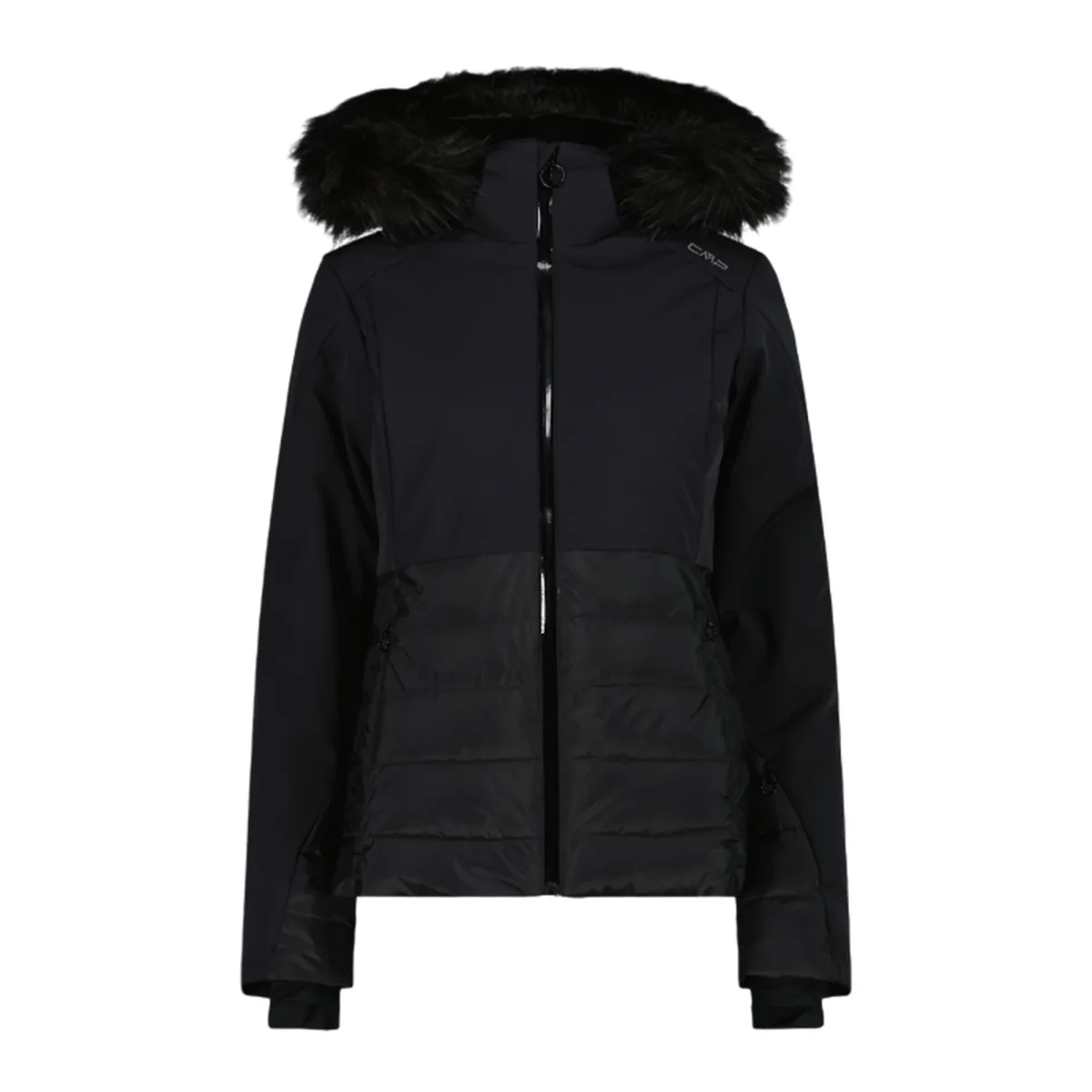 Giacca da sci nera Donna con cappuccio con ecopelliccia