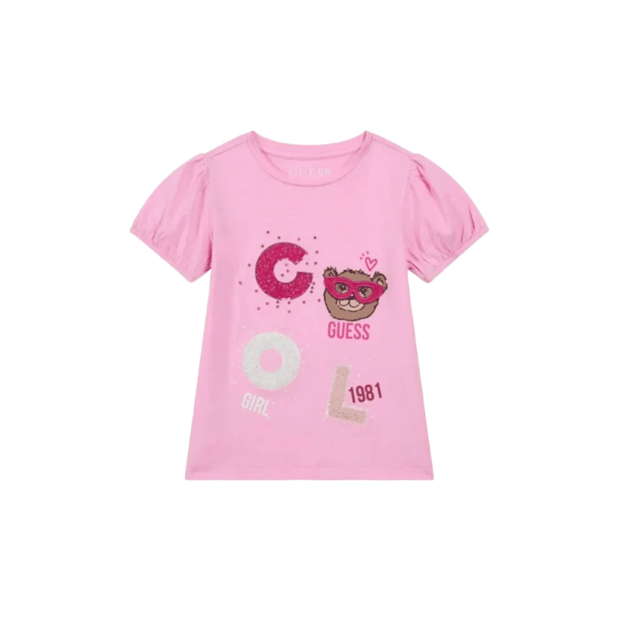 GUESS T-shirt da bambina in misto cotone con scollo rotondo