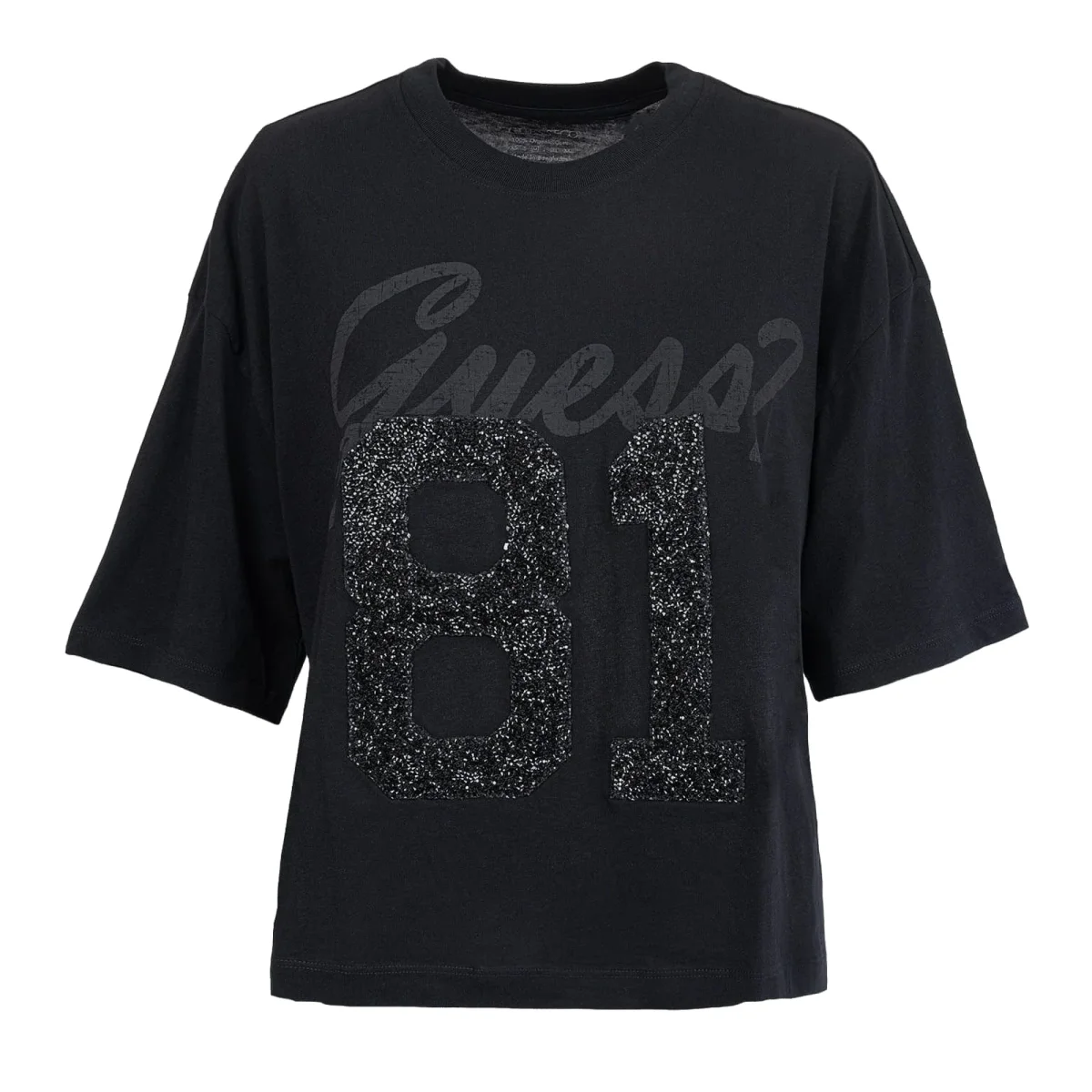 GUESS T-Shirt Corta Stampa a Strass da donna