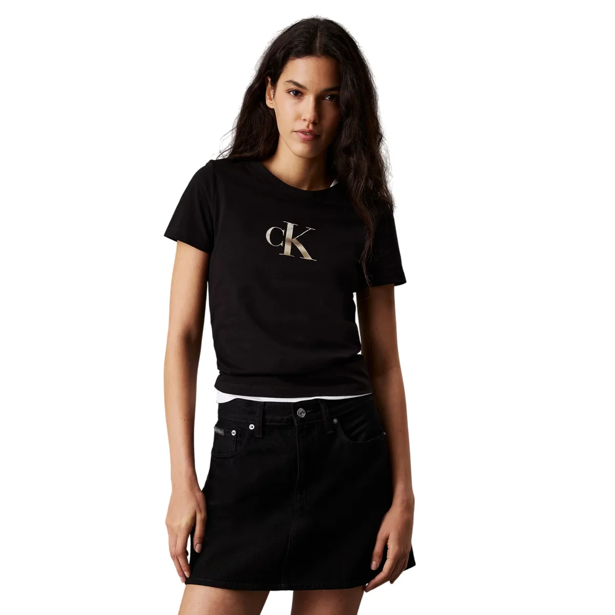 T-shirt Donna Scollo Tondo e Logo Sfumato